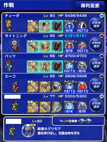 装備 ゴーレムのふえ(IX)、ルールーのかんざし(X)、巨人の指輪(VIII)