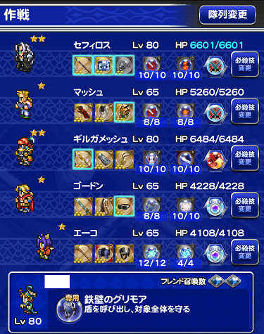 装備 ドラゴンクロー(VI)、ワイルドベア(XIII)、ゴドーのお面(VII)